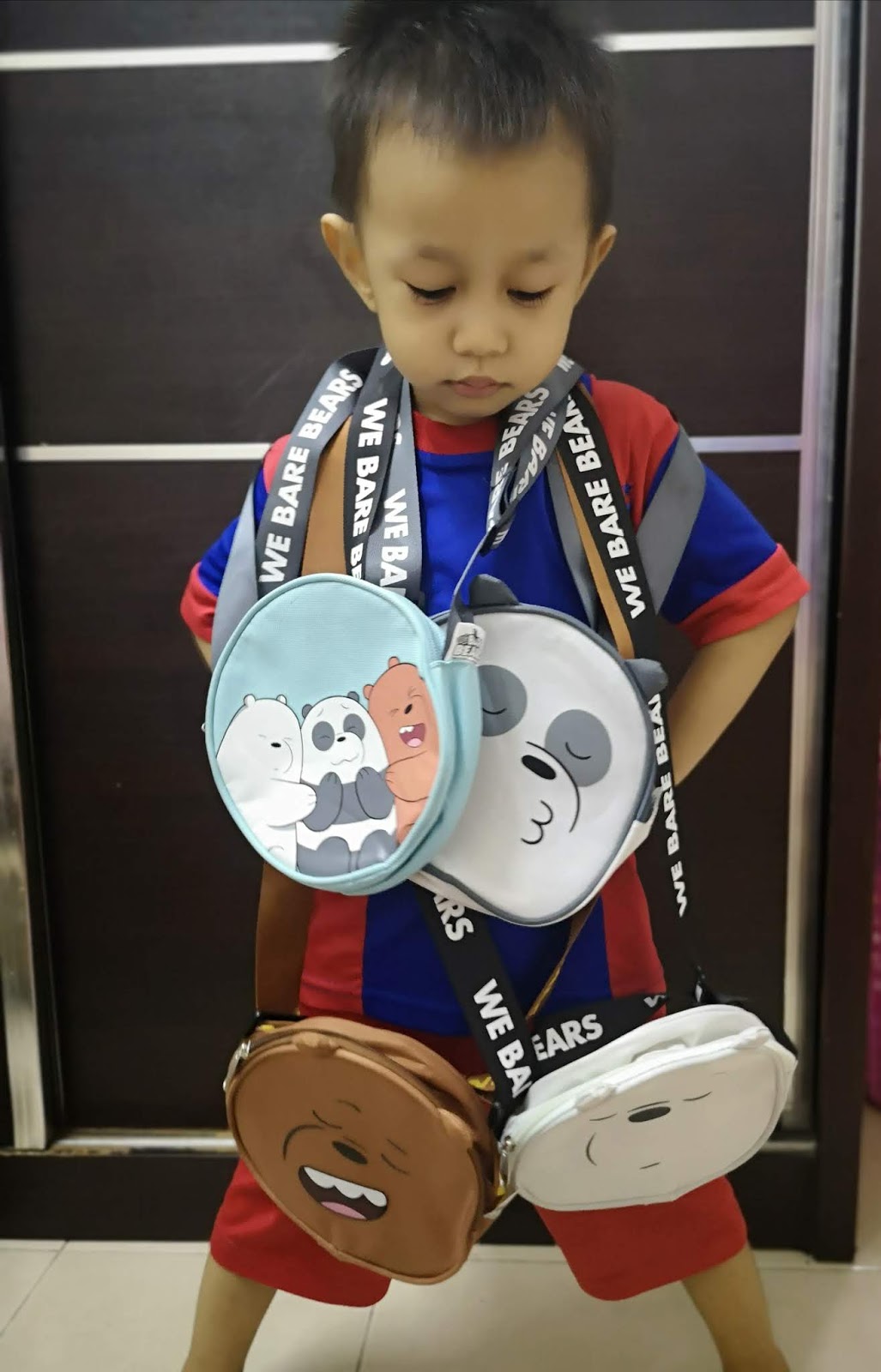 Mimie dah dapat pun keempat empat koleksi sling bag. Sorang satu anak anak Mimie dapat tau.