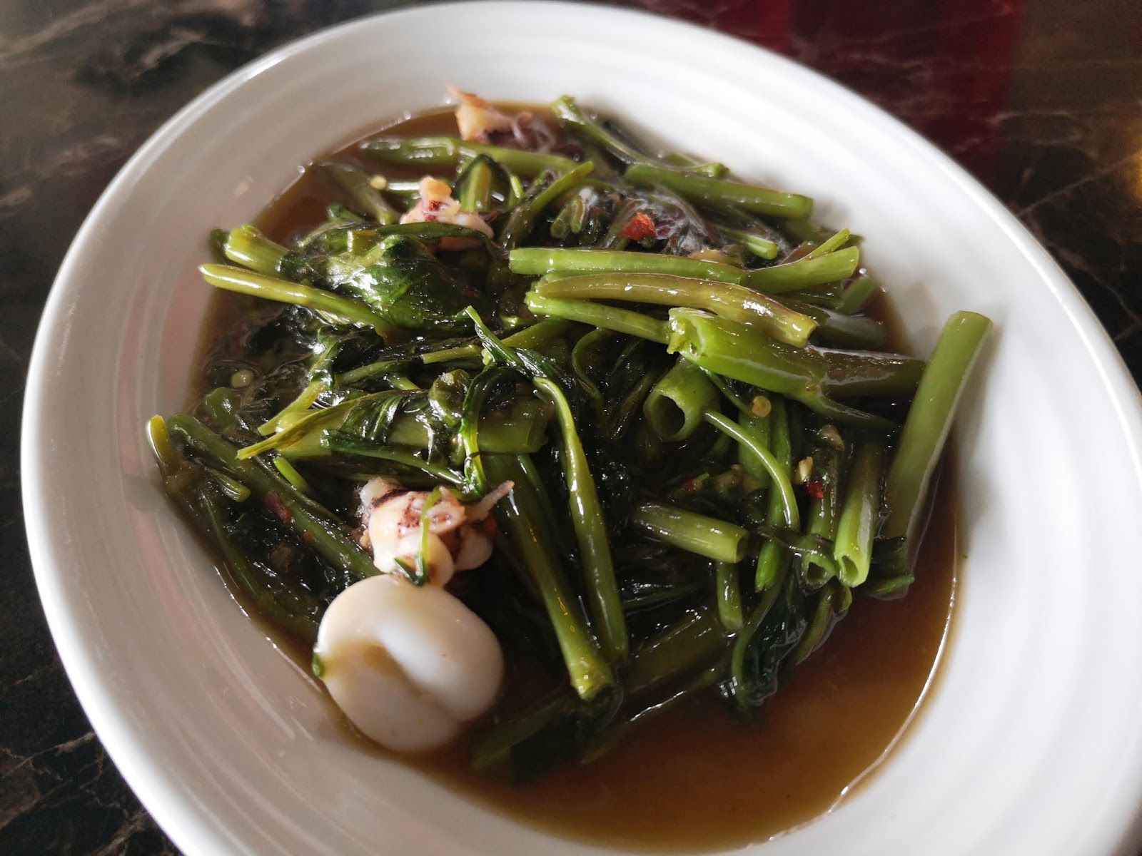 Sampai je kat Ashraf Station Mimi order Set 2 yang berjumlah RM55. Set 2 untuk 3-4 orang makan. Set 2 ni ada 4 nasi putih, Siakap Masak Pedas, Udang Goreng Tepung, Sayur Kangkung Belacan, Tomyam Campur dan Air Sirap. Mimi tambah side dish iaitu Telur Bungkus.