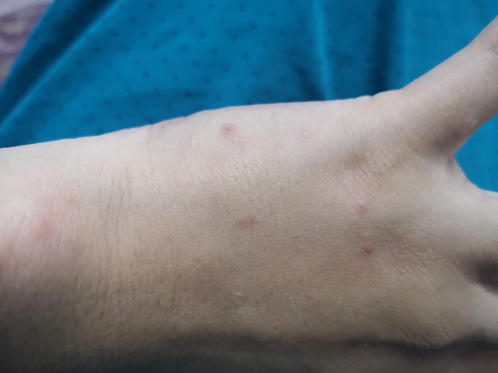 | Kat tangan kanan pun dah timbul biji halus ni |