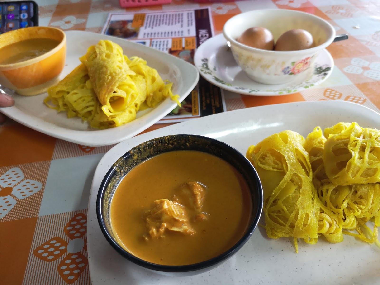 | Set Roti Jala Dengan Kuah Kari Ayam dan Telur Separuh Masak. Telur Separuh tu untuk suami Mimi. Kuah memnag pekat dan sedap. |
