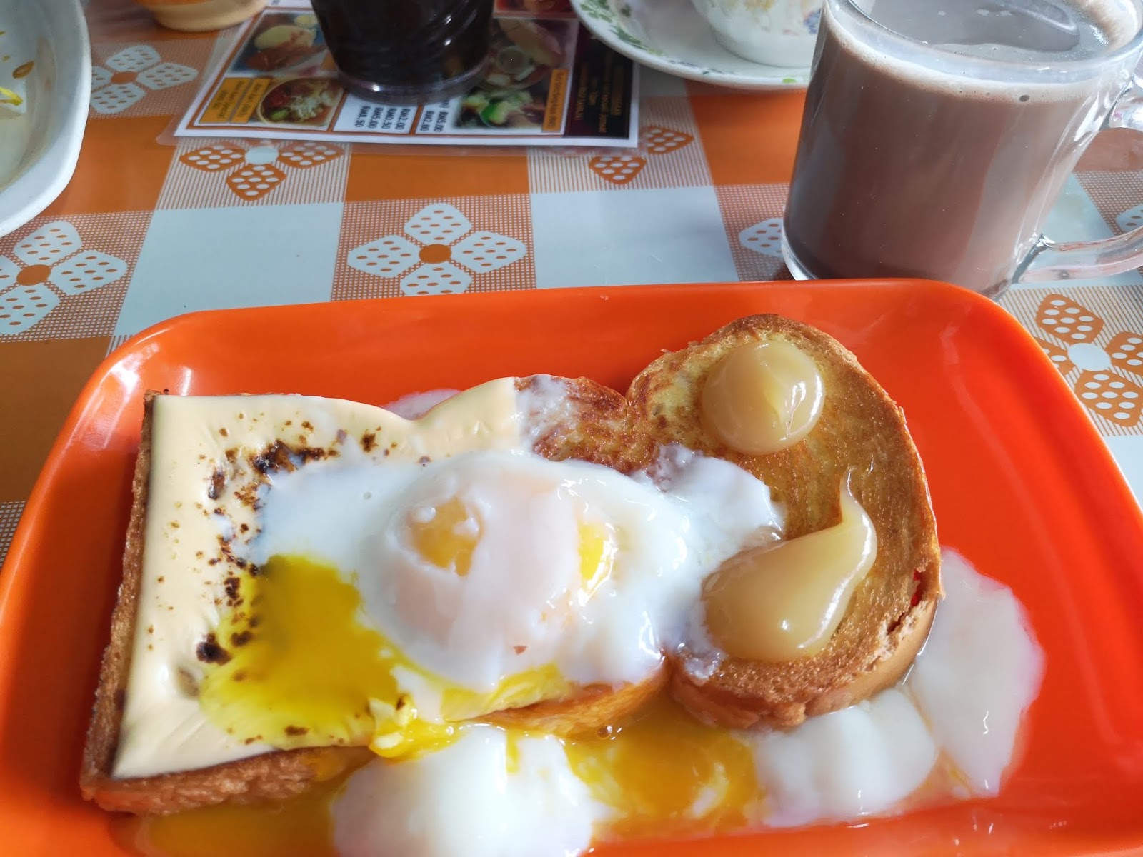 | Roti Bakar Telur Goyang Cheese dan Milo Suam untuk Mimi |