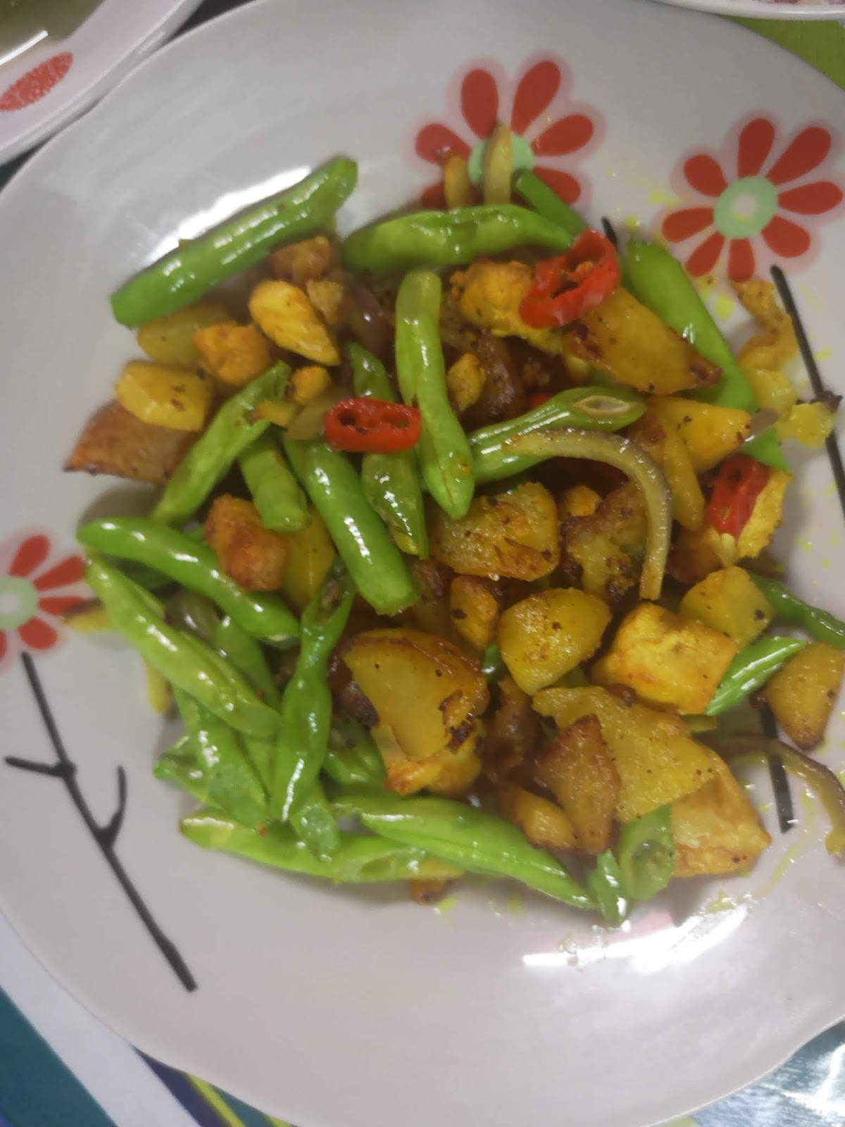 | Ayam goreng kunyit dan sayur kacang buncis |