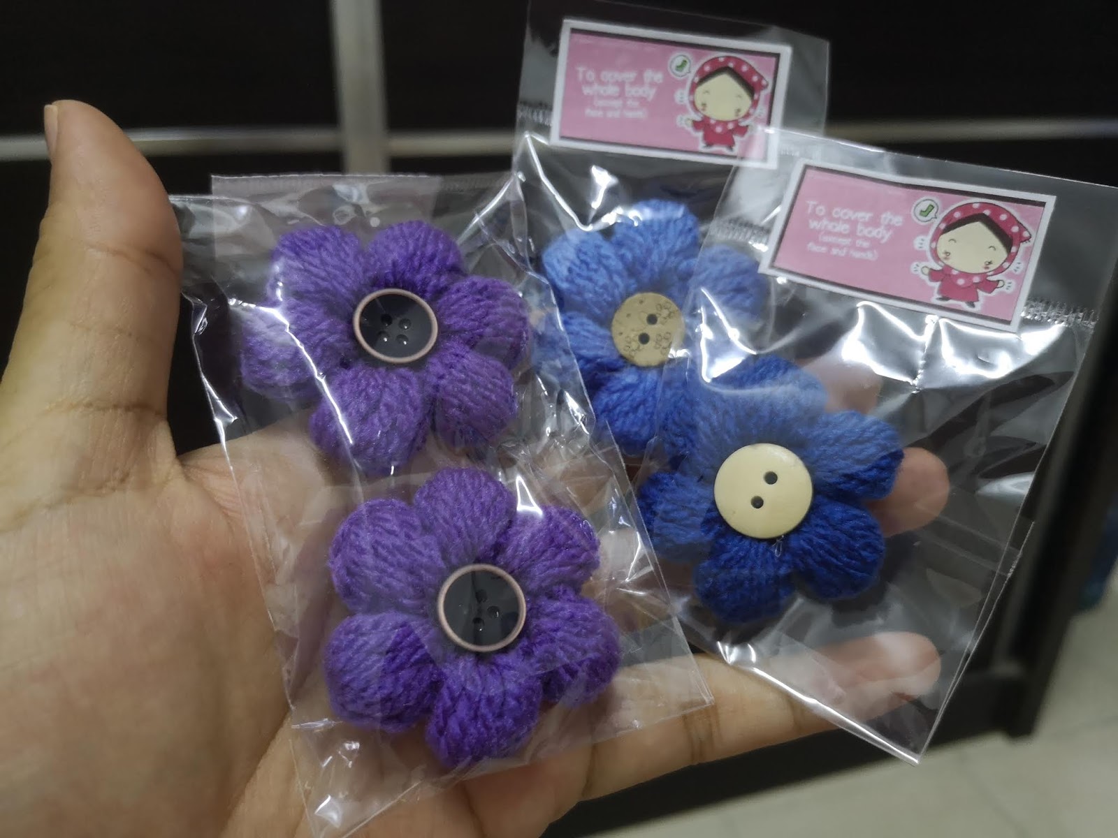 Hadiah yang Mimi terima tu ialah beg yang diperbuat daripada jeans dan juga kerongsang.