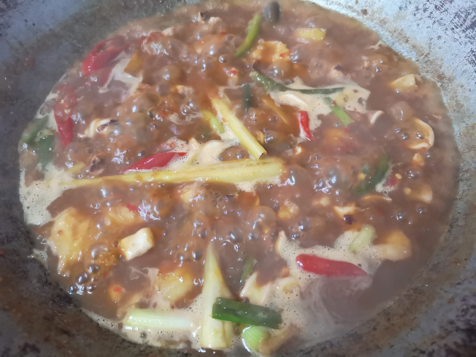 5. Gaul rata. Kemudian masukkan air asam jawa, kicap, garam dan gula.