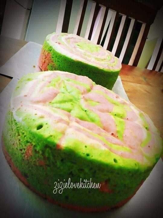 🧁Untuk dapatkan warna tembikai, bahagikan kepada 3 bahagian. 1 bahagian warna merah lebihkan. Lagi 2 bahagian untuk warna putih (asal) dan hijau.