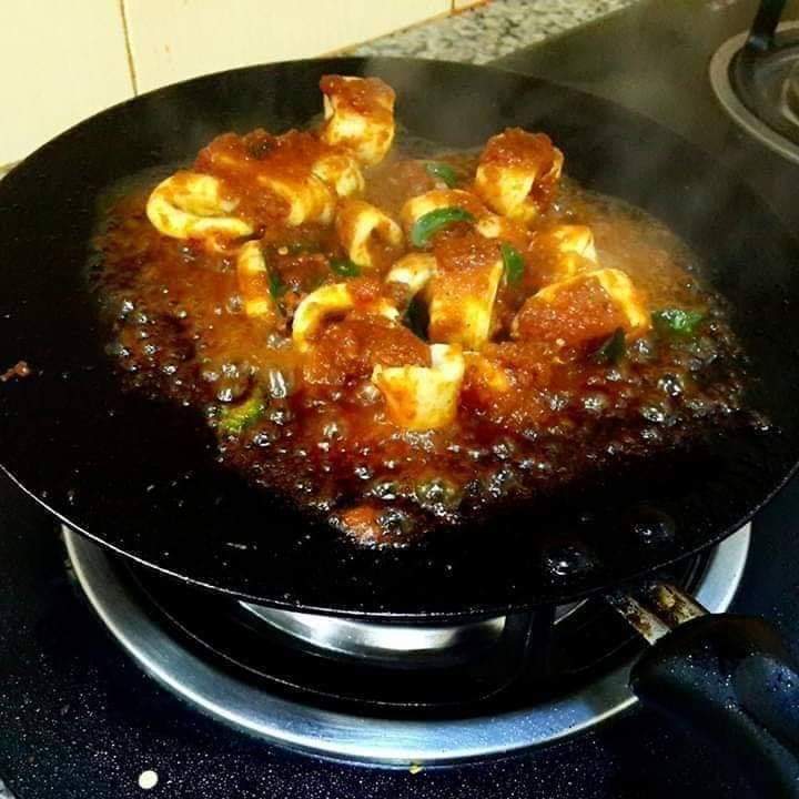 3. Masak bagi pekat kemudian masukkan sotong. Masak sampai kering sedikit kuah kemudian masukkan ubi kentang yang digoreng tadi. Akhir sekali taburkan dengan bahan hiasan.