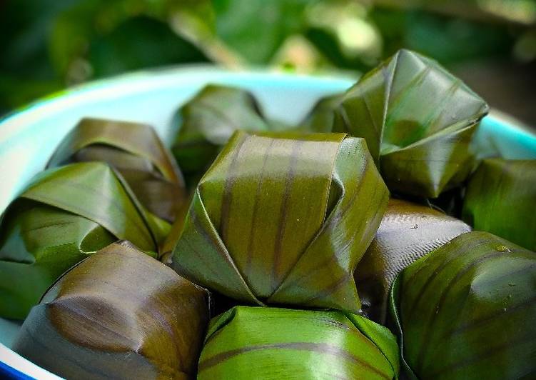 🥟Ambil daun pisang dan layurkan. Bungkus beras pulut ikut bentuk yang disukai.