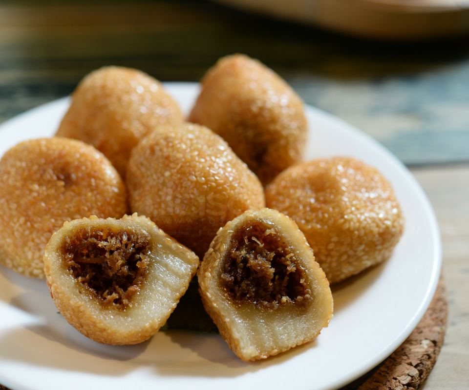 🥟Ambil doh dan isikan inti. Buat hulat bulat dan golekkan atas bijan.