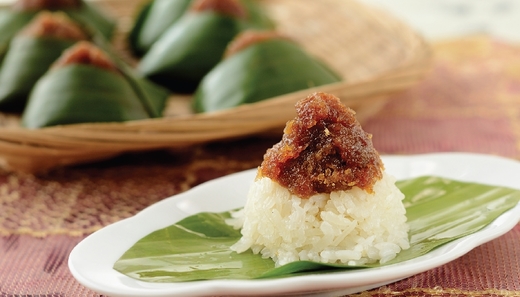 🥟Ambil inti dan letakkan ke atas pulut. Bungkus kuih dan siap!