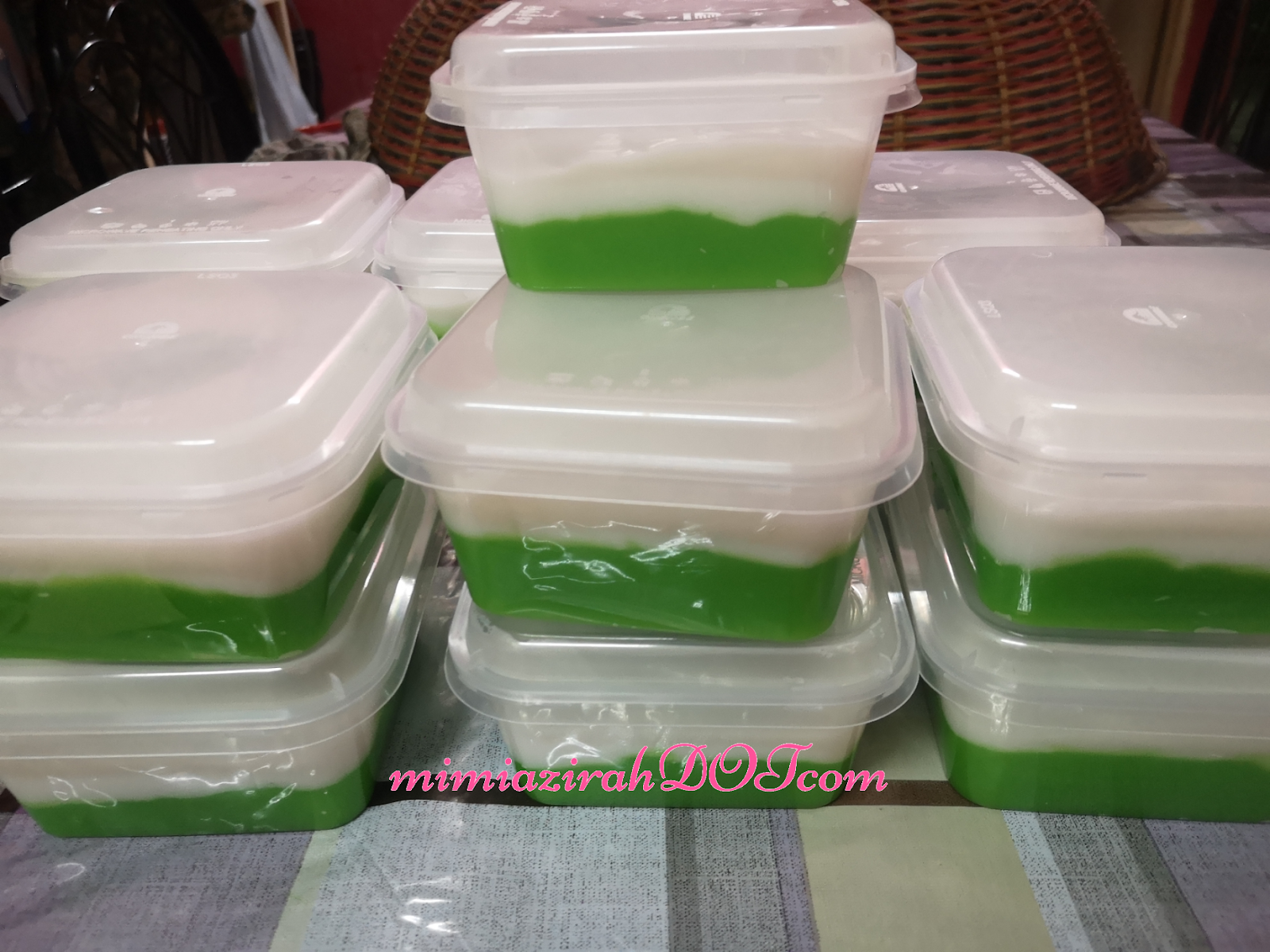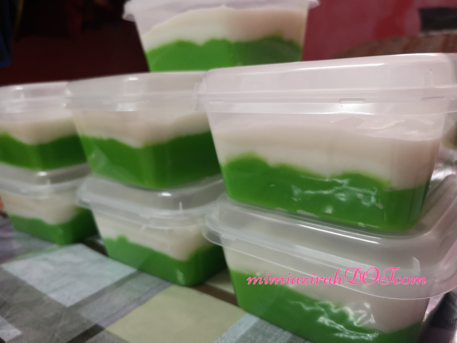 3. Bila adunan lapisan bawah sejuk sikit, masukkan ke dalam bekas. Kemudian tuang pula lapisan atas. Buat sehingga adunan habis. Siap!