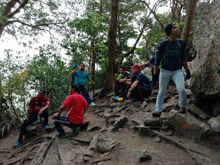 Bergambar kenangan dulu sebelum teruskan hiking ke Batu PutihStamina tu masih adalah tapi... Tapi kan.. Ada kejadian yang berlaku selepas track Batu Putih tu. Sampai Batu Putih tu Mimi dan yang lain sempat duduk berehat sebelum mulakan hiking semula.