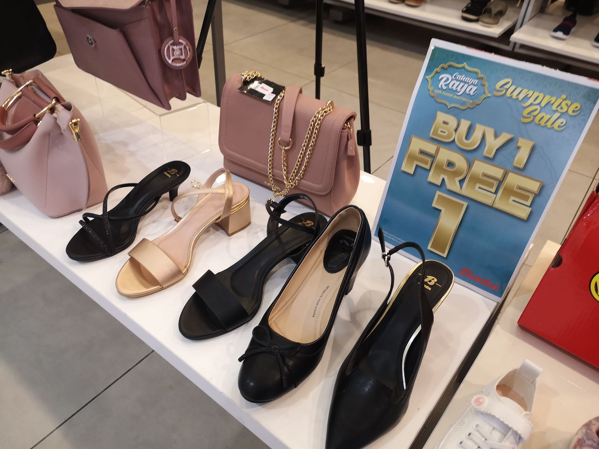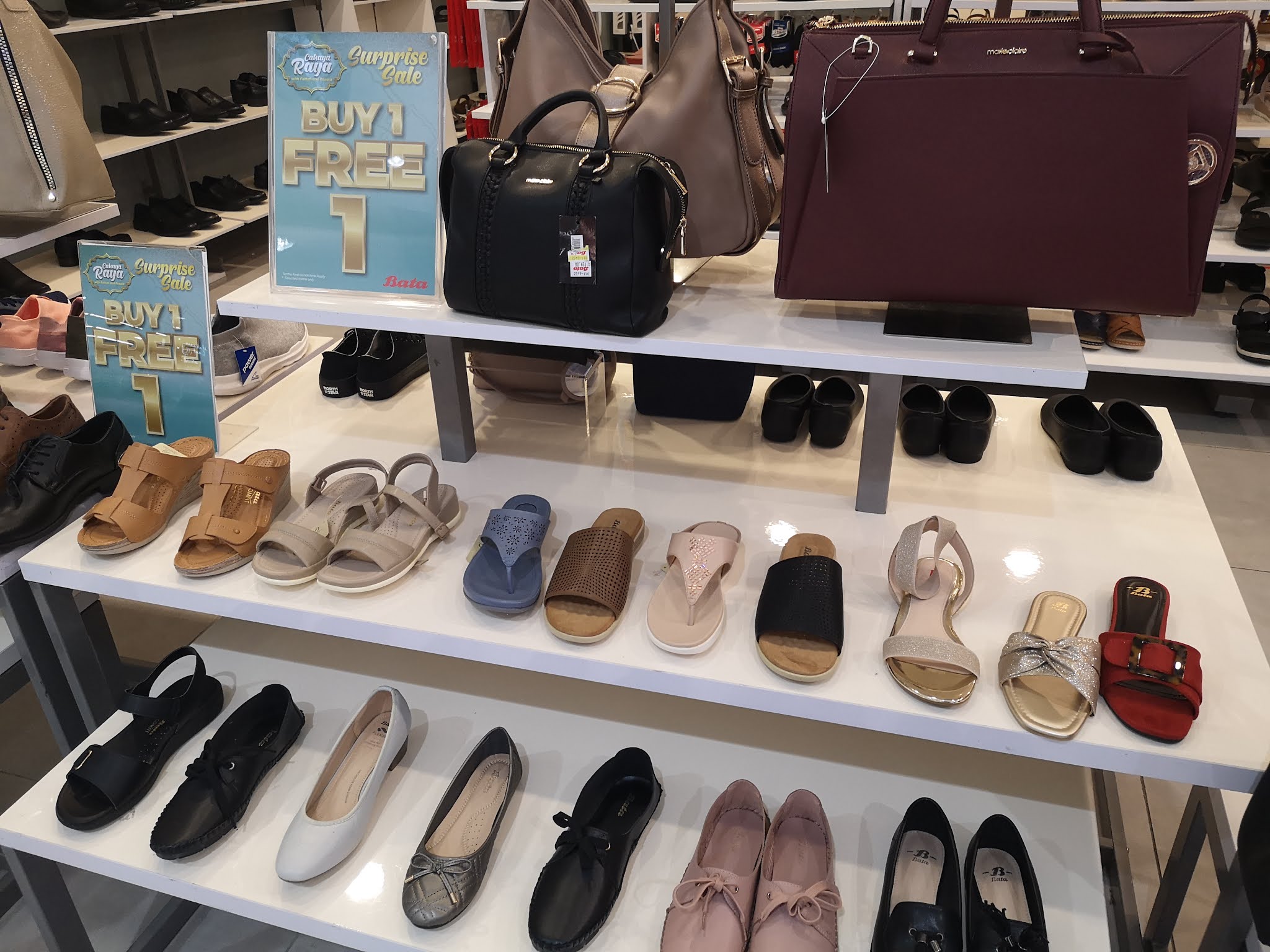 Tawaran beli 1 percuma 1 di kedai BATA yang terpilih. Tak semua kasut atau beg yang dibeli tu free tau, hanya yang terpilih sahaja. Nak mudah, tanya saja staf Bata nak promosi beli 1 percuma 1.