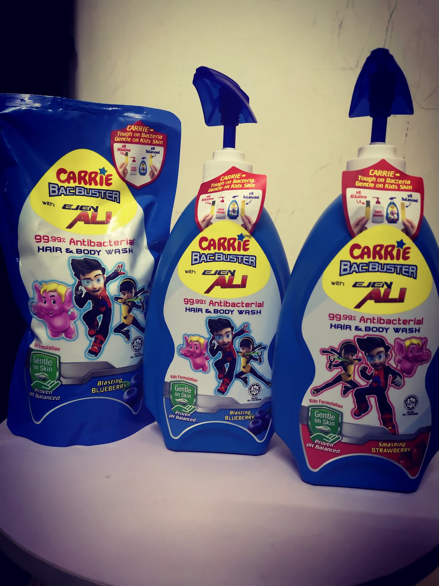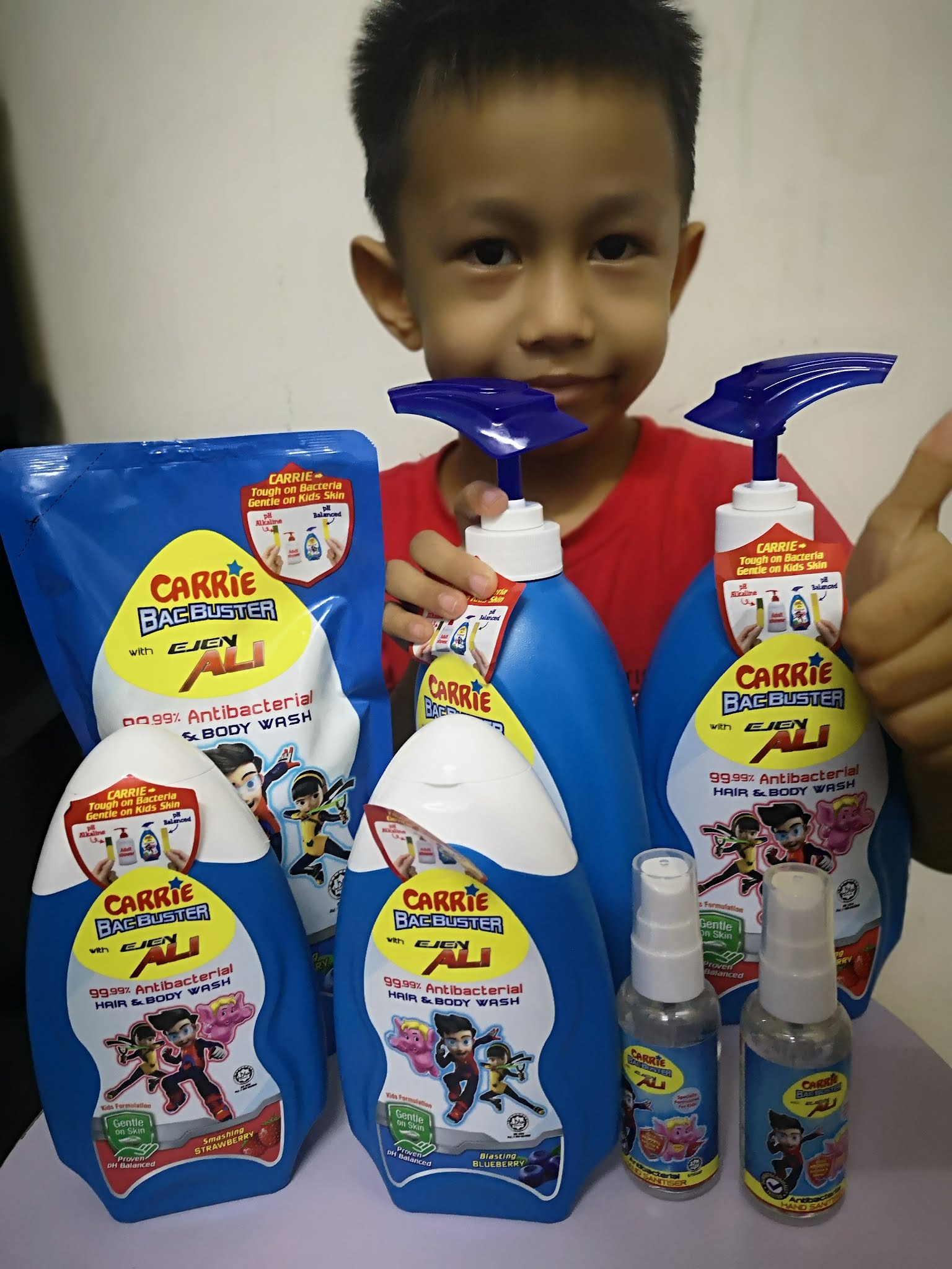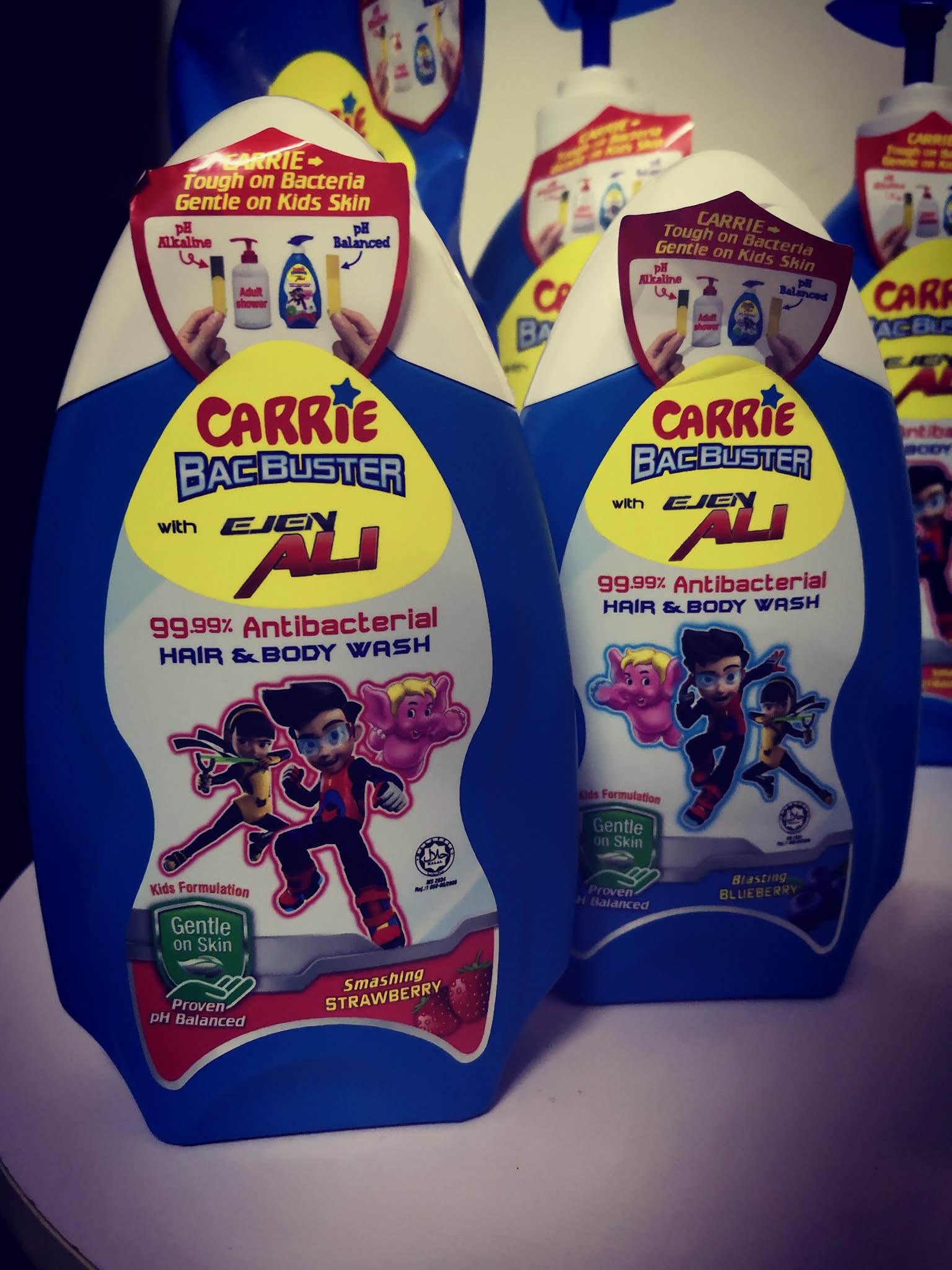 Ingat tau, mandian orang dewasa tidak sesuai dengan kulit kanak kanak kerana bersifat alkali. Lepas ni dah boleh mula cari produk Carrie Bacbuster with Ejen Ali untuk anak anak.
