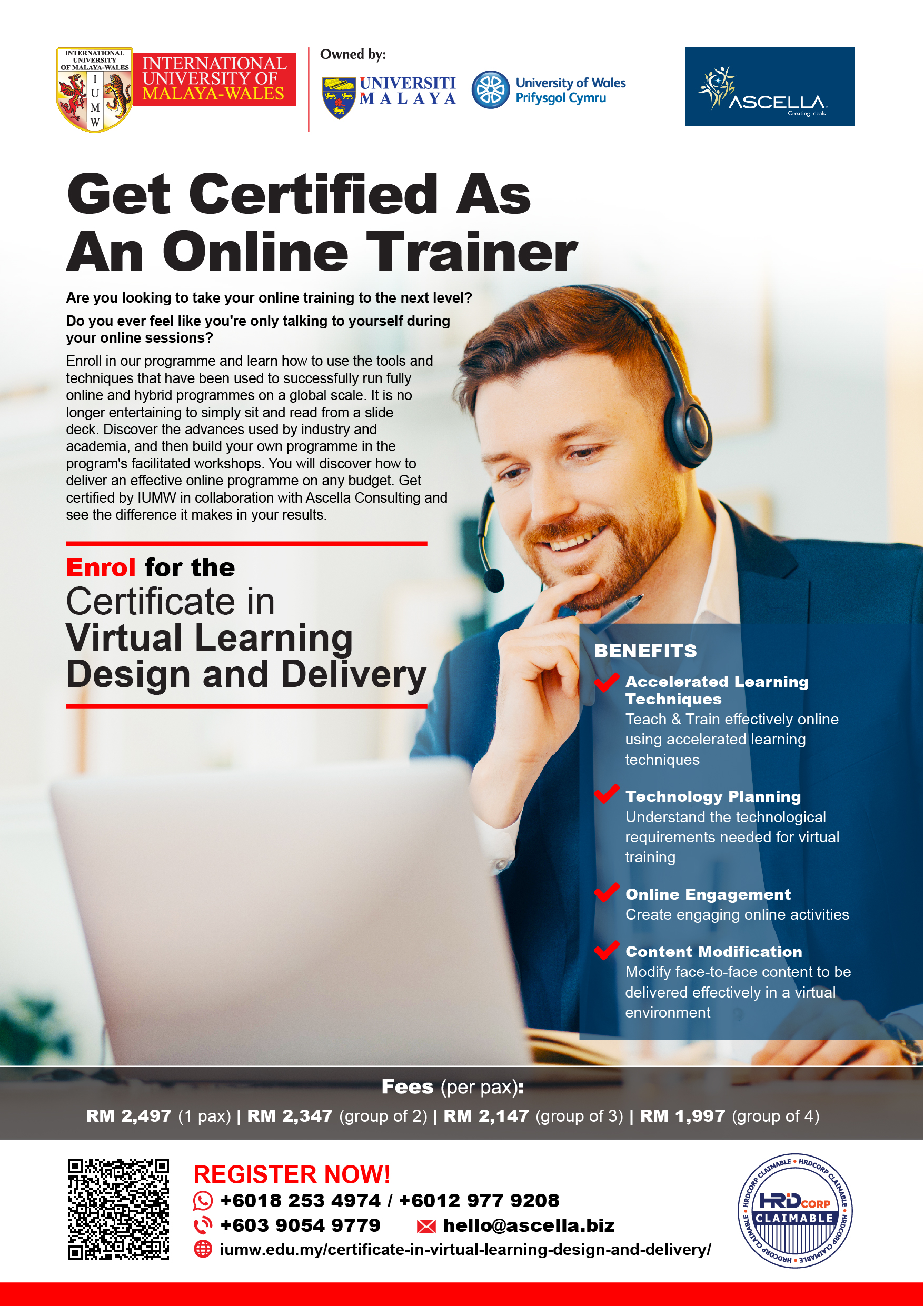 Website: https://iumw.edu.my/certificate-in-virtual-learning-design-and-delivery/ Email: hello@ascella.biz