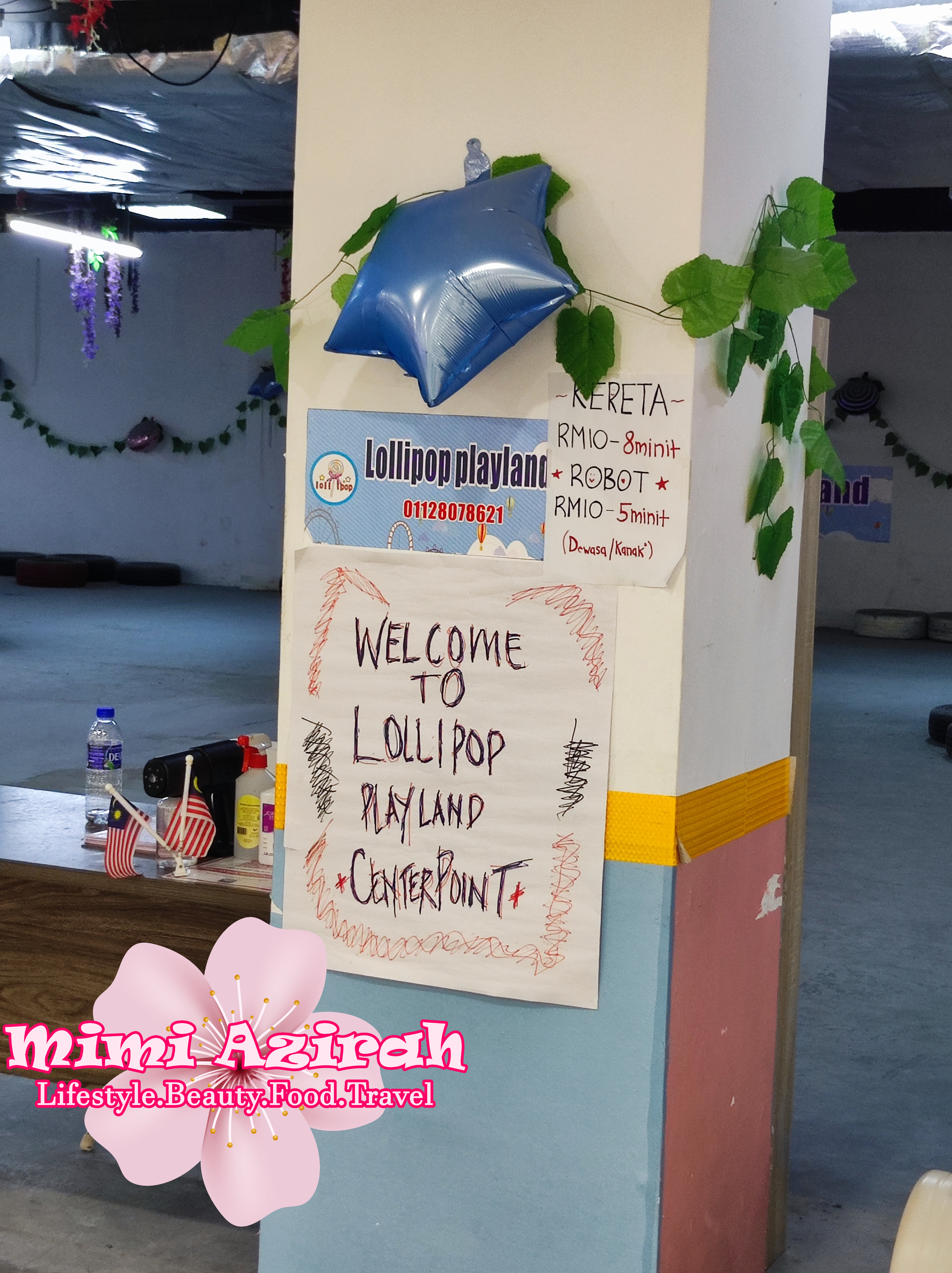 Selesai makan di CU, pergi semula Centre Point. Naik lif pergi tingkat 2. Bawa Amani naik kereta di Lollipop Playland, pusing pusing mall.