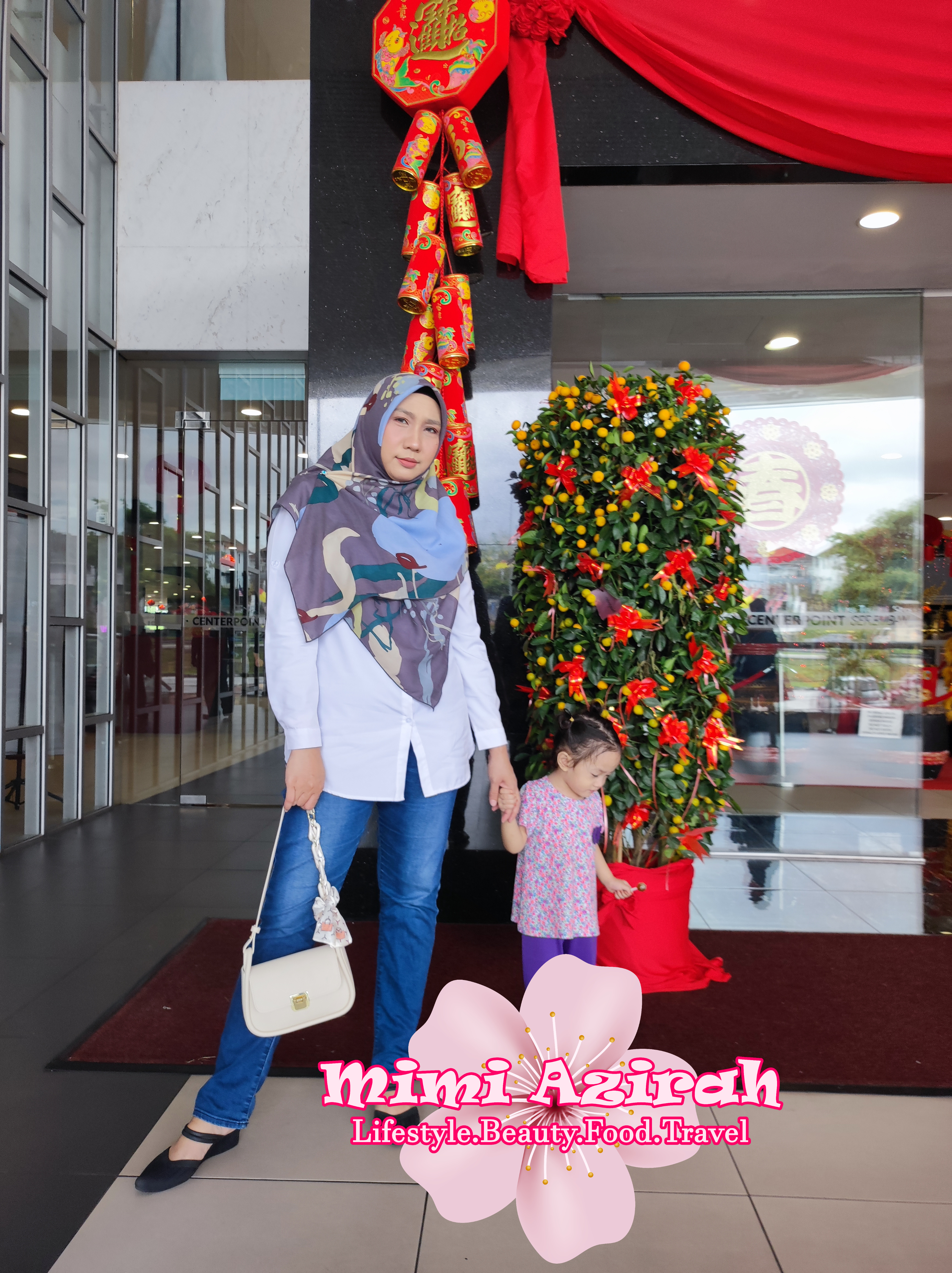 Sebelum tu, kita bergambar di depan pintu masuk Centre Point. Sampai di CU, Mimi beli K-Rispy Chikin, Hot Chocolate with Marshmallow dan Berry Pop Yogurt Soft Serve. Kakak Aina beli K-Cheezy Corndog, Buldak Mayo Mac & Cheese Spicy dan Marigold Orange.