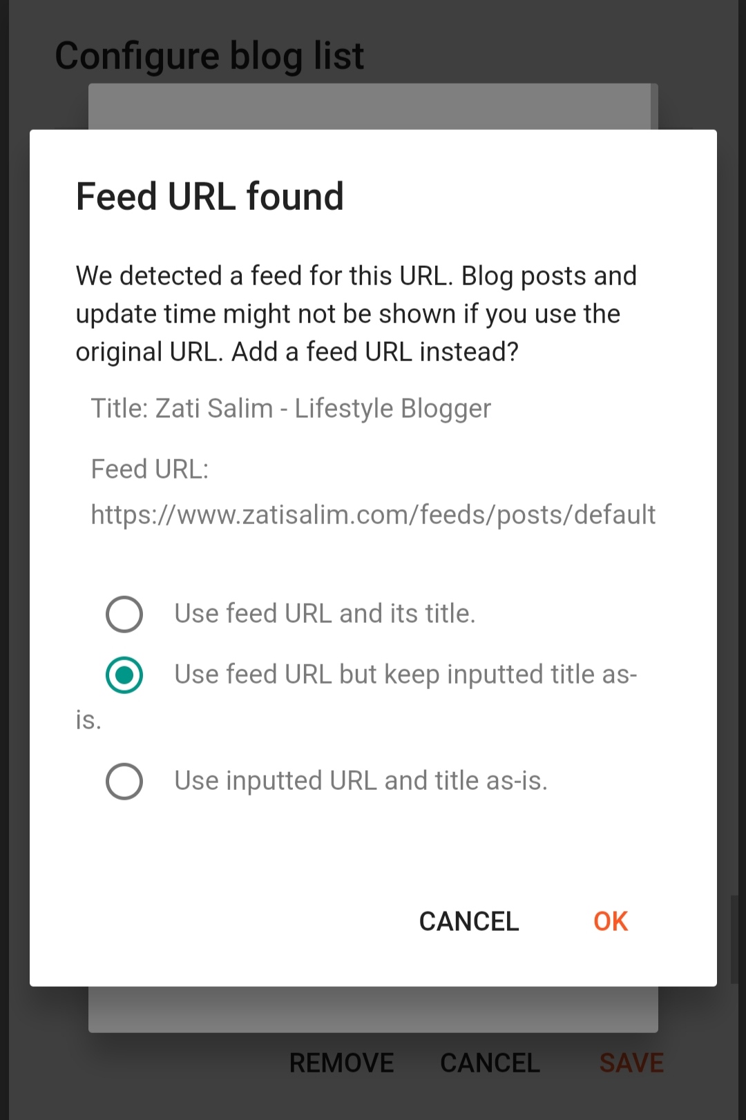 5. Url blog memang akan jadi seperti ini https://www.abcdefg.com/feeds/posts/default. Proceed klik ok.