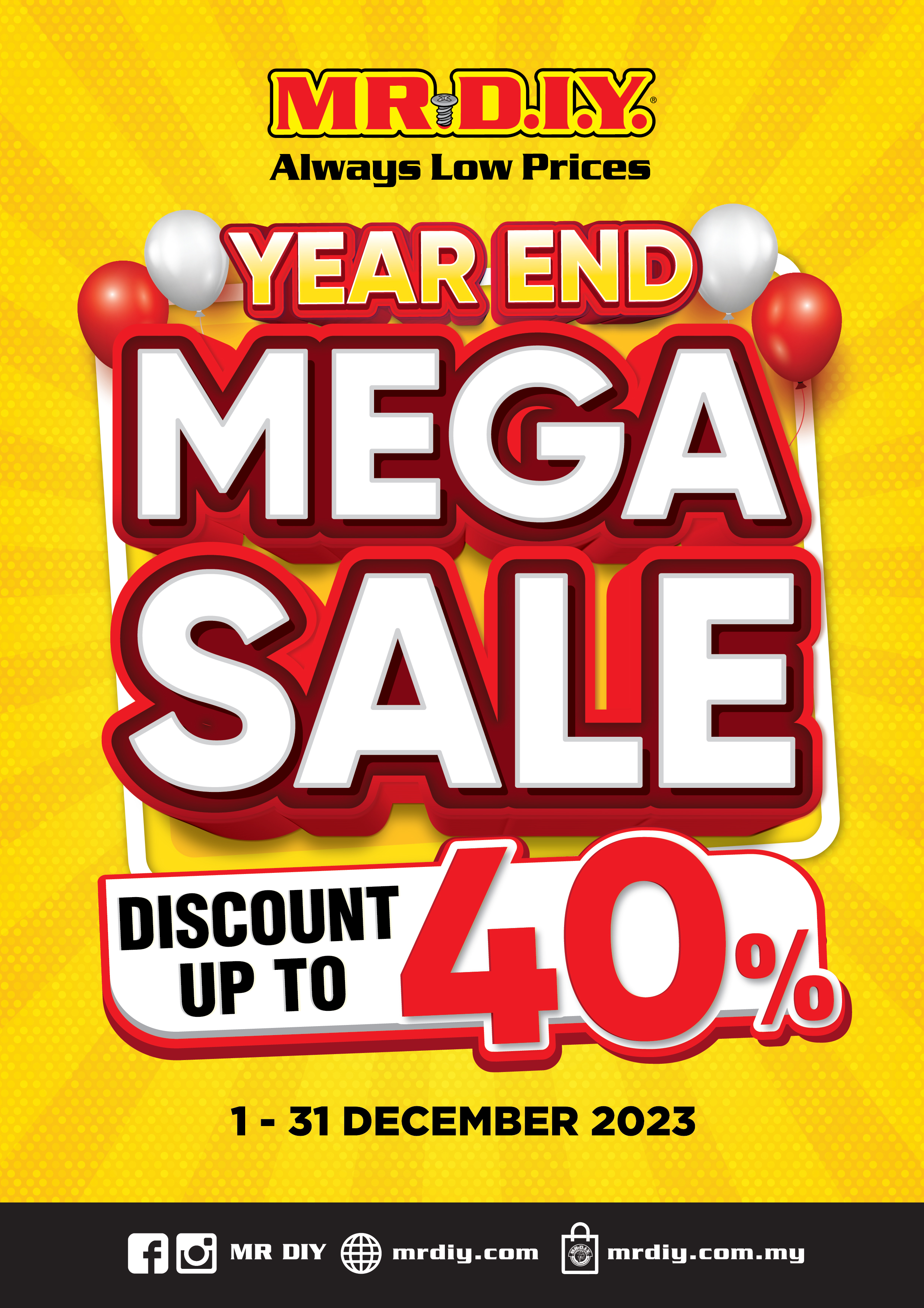Rebut peluang untuk menambah barangan keperluan, menghias semula ruang rumah dan menyambut tahun baharu dengan penjimatan dengan Jualan Mega Akhir Tahun MR D.I.Y.! Untuk maklumat lanjut, lawati laman web MR D.I.Y., mrdiy.com, platform e-dagang, mrdiy.com.my, dan media sosial - Facebook, Instagram, and TikTok.