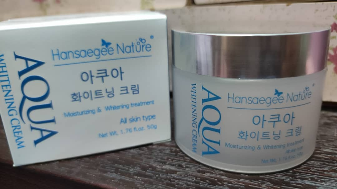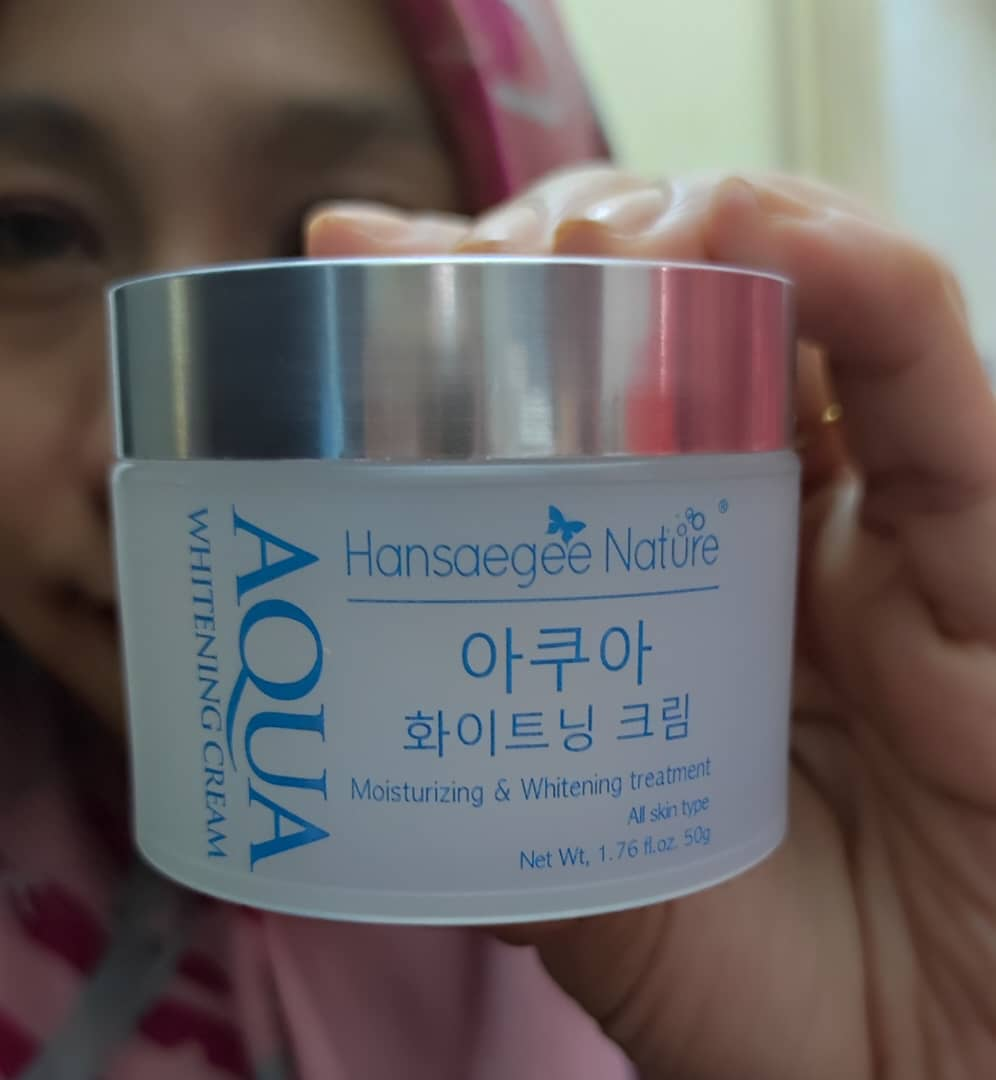 Sebab apa Mimi kata pelembap muka ni merupakan moisturizer terbaik? Sebab fungsinya yang pelbagai tau korang. Selain melembapkan kulit muka ia juga mengurangkan pengeluaran sebum yang berlebihan pada kulit muka. Selain itu, ia membantu mencerahkan kulit muka secara alami dan kulit muka akan jadi lembut dan sihat. Ia juga boleh membuatkan kulit muka kelihatan segar sepanjang hari selain daripada buat mekap korang tahan lama dan tak bercapuk. Salah satu skincare yang atut ada dalam senarai skincare korang ialah Aqua Whitening Cream dari Hansaegee Nature.